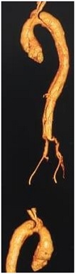 Pre-operative CT Aortogram confirmed that the dissection did not involve any of the three arch vessels (Rt. common carotid, Lt. common carotid & left subclavian artery) or the Rt. subclavian artery whose origin was from the true lumen of the descending thoracic aorta. CT angiogram of the head and neck revealed 80% narrowing of the Rt. Internal Carotid Artery at the bifurcation and intact Circle of Willis.